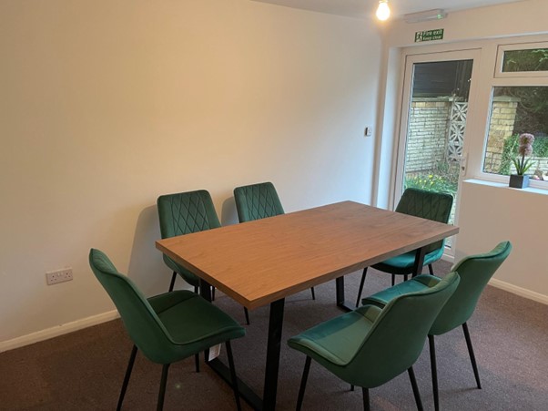 Green Hill House features four spacious double bedrooms, a bright and airy lounge, a fully equipped kitchen, a laundry room, and a dining area that opens onto a large patio. The patio overlooks a beautiful private garden, offering a serene outdoor space that supports our service users’ physical and emotional wellbeing. Stepping outside and soaking up the sun has been shown to lift mood and encourage positive feelings — a key part of daily life at Green Hill House.
