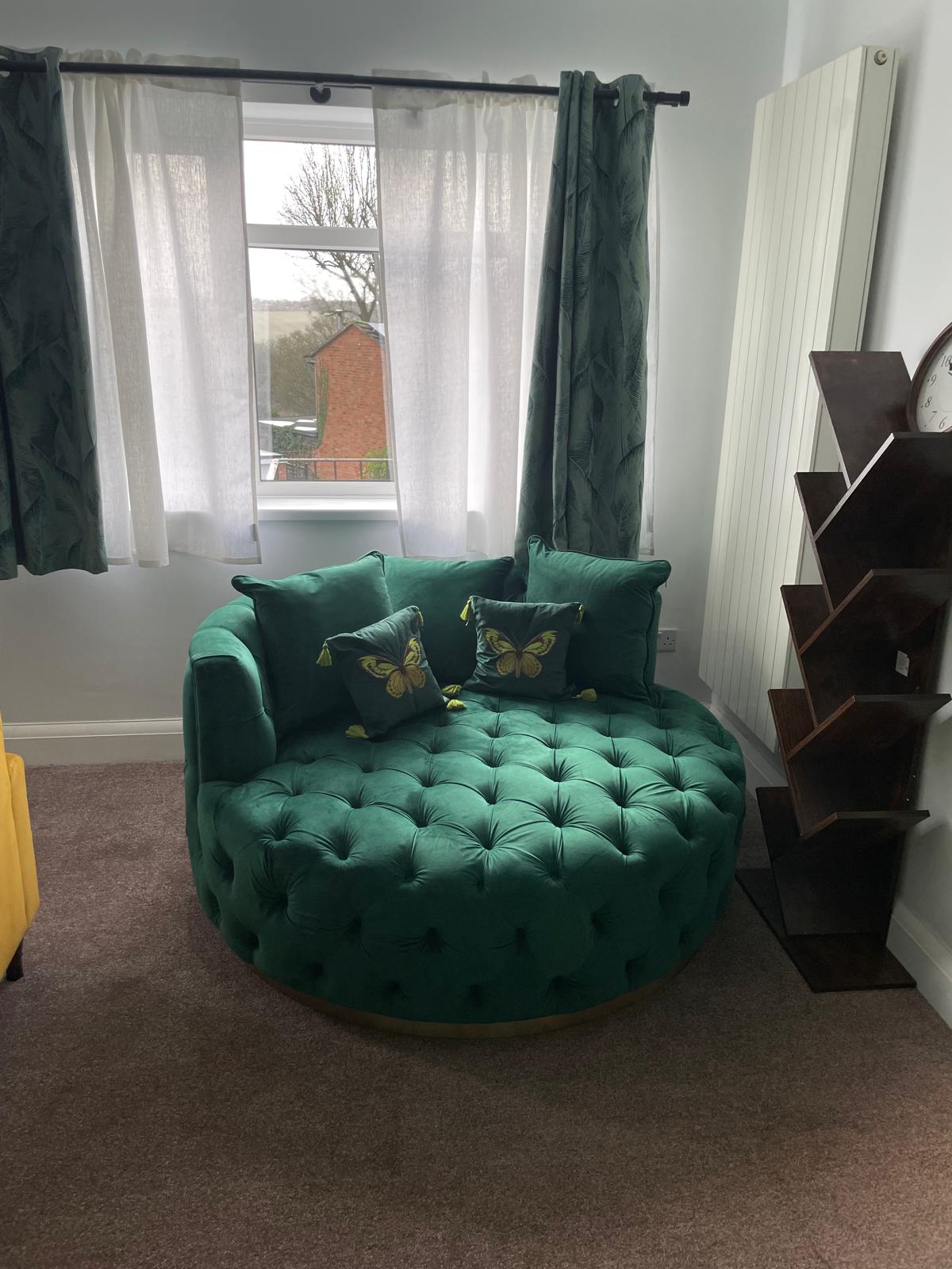 - Our spacious lounge is designed for ultimate relaxation, with comfortable seating, a large flat-screen TV for shared enjoyment and a luxurious round sofa that invites comfort, connection, and cosy evenings in.